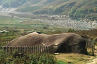 | Bãi đá khắc cổ Sa pa trải ra trên địa phận của ba xã Tả Van, Hầu Thào và Sử Pan, nằm trong thung lũng Mường Hoa với diện tích khoảng 8 km2. Nằm ngay bên đường đi quanh co dốc núi, bãi đá khắc cổ gồm 159 tảng đá lớn nhỏ nằm lẫn trong cây lá, nằm sát ngay bên đường hay giữa ruộng lúa nước... thoạt tiên chẳng có ấn tượng gì. Nhưng xuống xe, bước chân theo hướng dẫn viên du lịch để nghe giới thiệu và tận mắt chứng kiến, xem xét các tảng đá, du khách mới thấy ngỡ ngàng trước kỳ công nhân tạo đã bao đời mà chưa có lời giải đáp nào thỏa đáng |